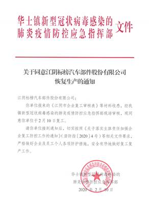 公司積極向江陰市政府申請復(fù)工,于正月十七接華士鎮(zhèn)新型冠狀病毒感染的肺炎疫情防控應(yīng)急指揮部文件通知, 公司正式啟動了生產(chǎn)計劃編排、關(guān)鍵設(shè)備物料拉動和員工召回等各項具體工作,在全面做好工作區(qū)域消毒和員工防護(hù)的前提下,緊急開展復(fù)工,保證產(chǎn)品準(zhǔn)時交付。